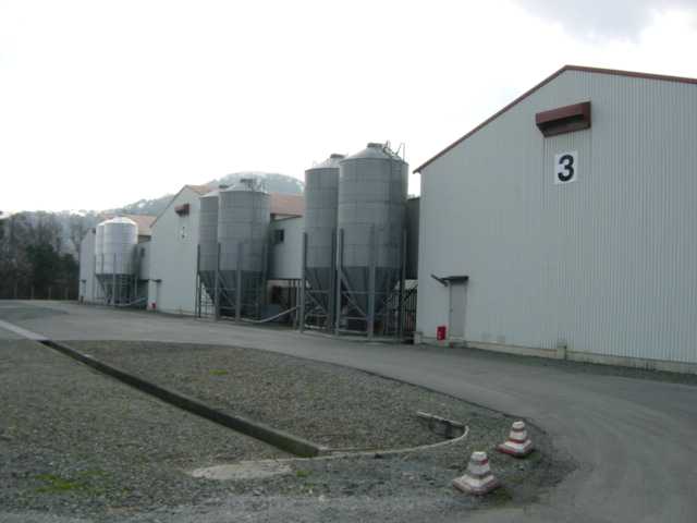 エサタンク(鶏舎の間にあるコマ状の銀色のもの)