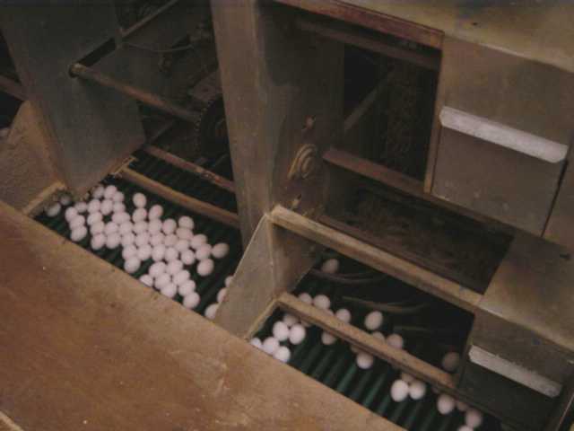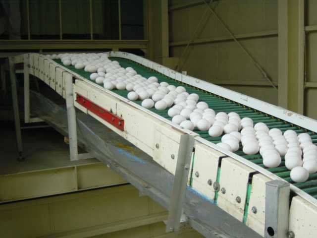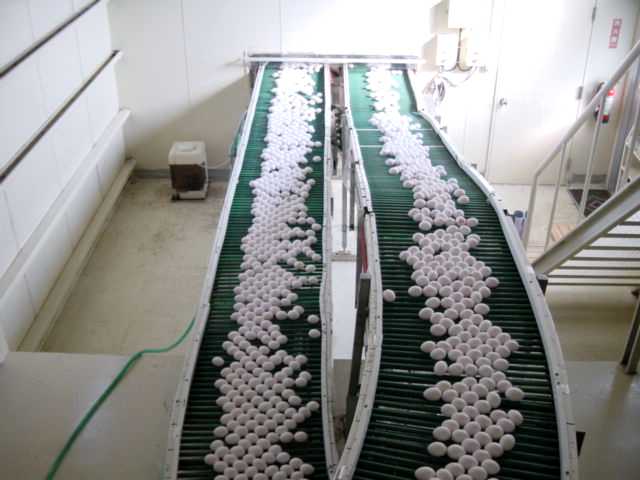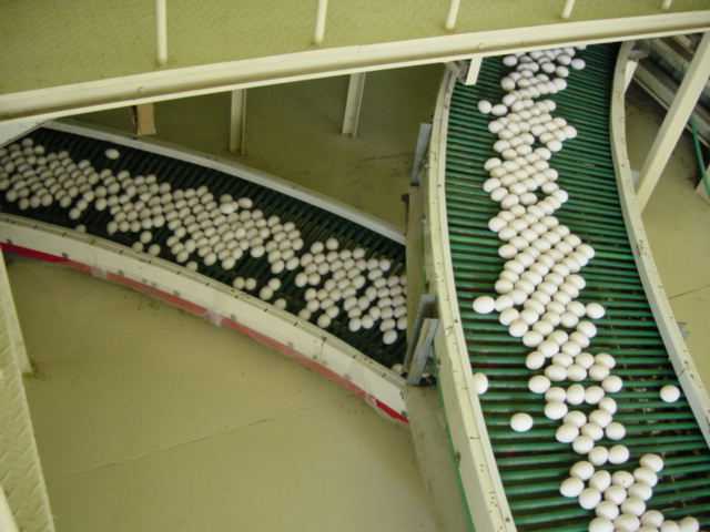 たまごは、左に向かってゆっくりと流れて、鶏舎の