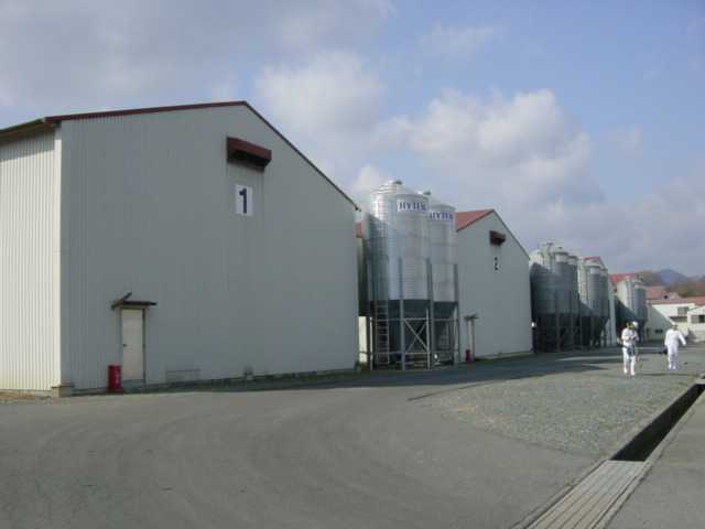 鶏舎1棟に3万6千羽の鶏が飼育されており、養鶏