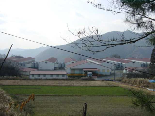 写真の手前が鶏舎側で、正面の壁の向こうが