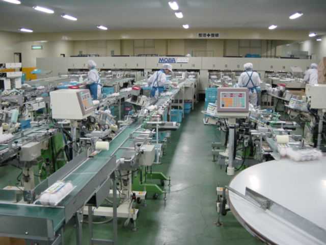 奥のマシン内で選別(サイズ分け)された後、サイ