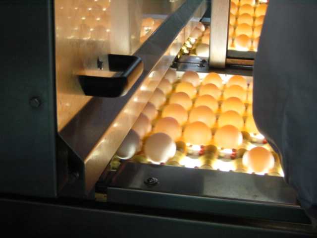 「透光検卵」(とうこうけんらん)は、暗室内でたま