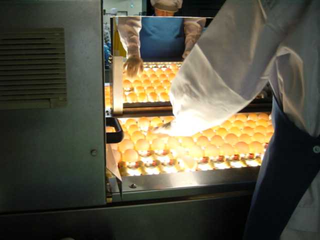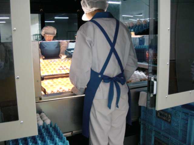 ベアにより、たまごは、まず洗卵室に入り、写真