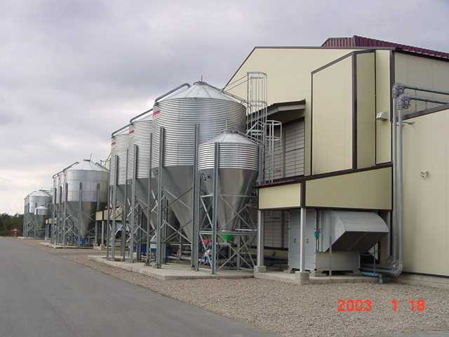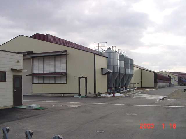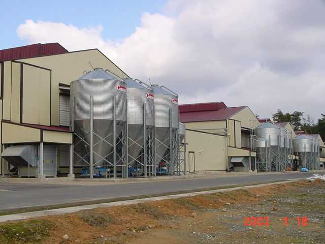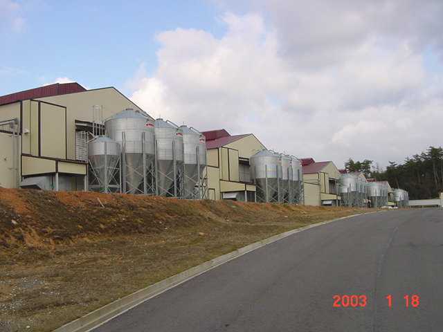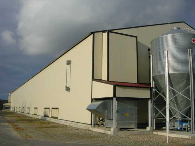 この農場のように、養鶏場の鶏舎とGPセンターが
