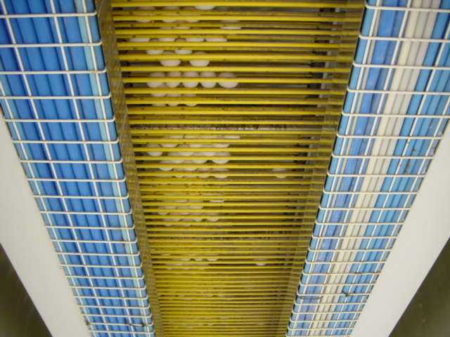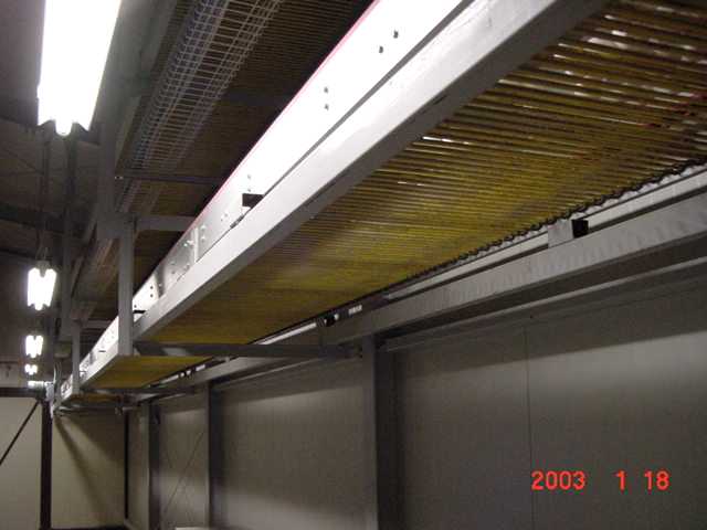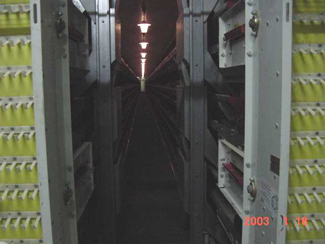 集卵ベルト(餌といの下にあるたまごを集めるための
