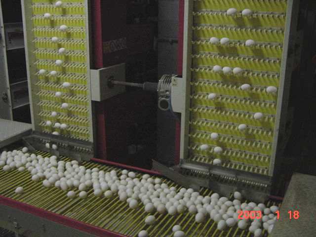 ベルト)上のたまごをローラーコンベアまで運びます。