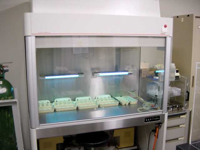 「クリーンベンチ」と呼ばれる無菌区画を作る
