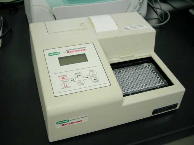 装置の右下上面にエリーザキットの反応プレートが