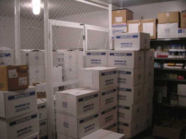 研究所の一角にある冷蔵の保管倉庫です。