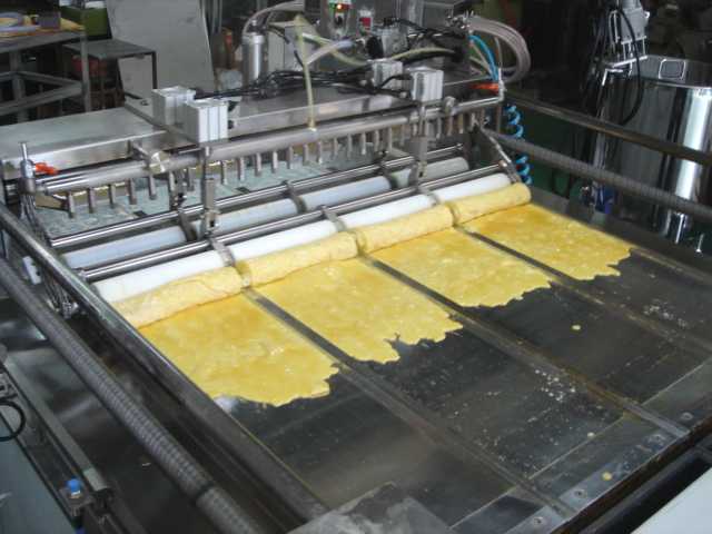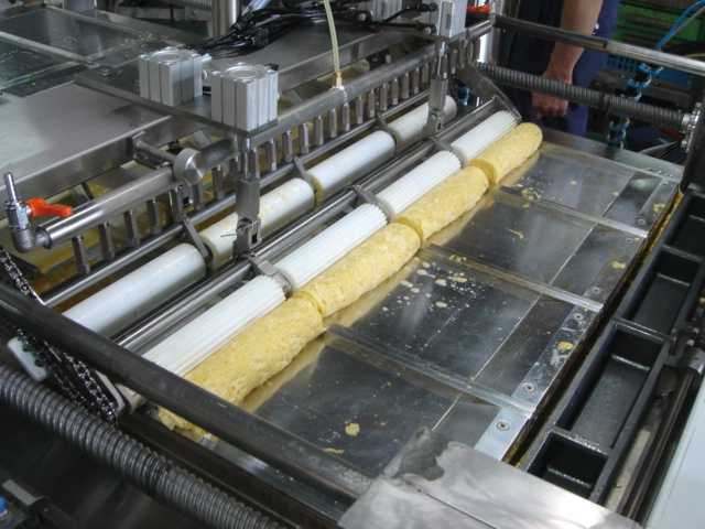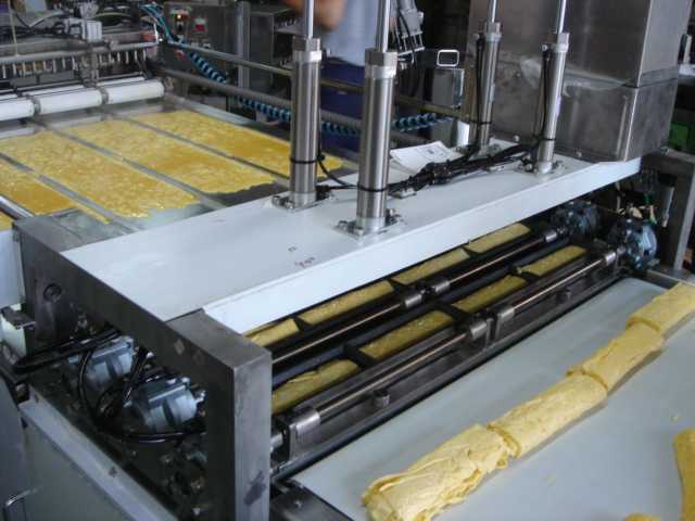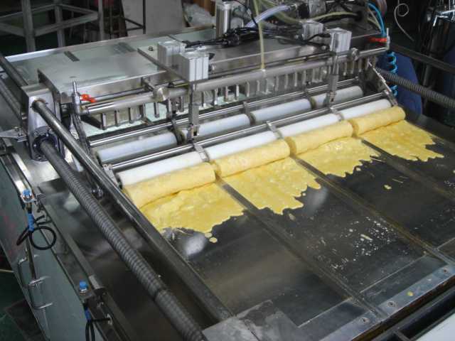 焼成されたたまごを巻き込む工程と次の液卵を焼成