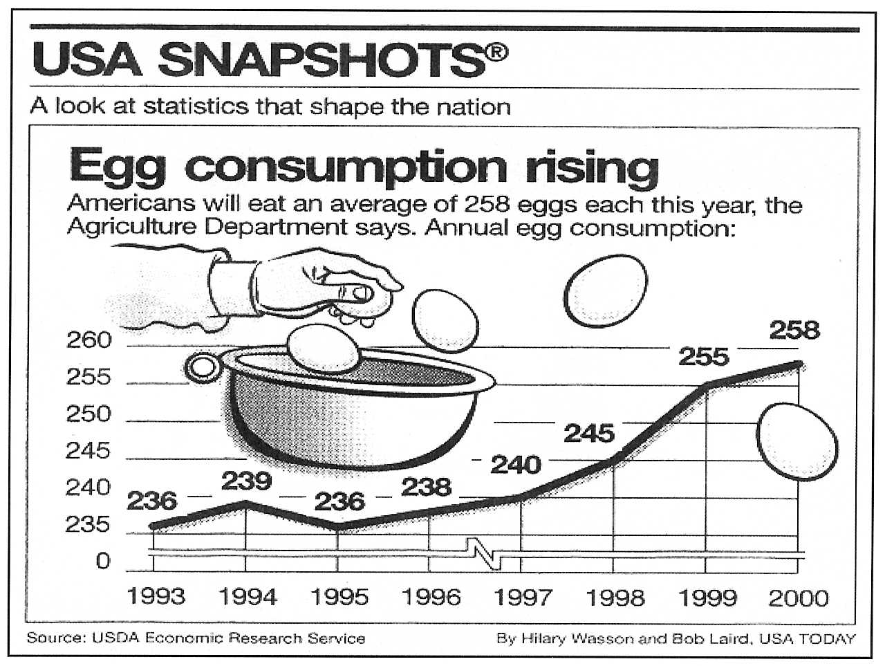 @ 統計で見るアメリカの姿 : 米国人は平均して1年間に卵を258個(鶏卵の年間消費量)食べている。(米国農務省発表)