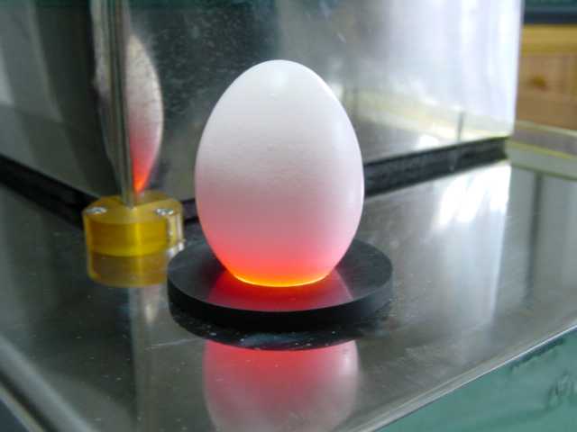 下から、光を当ててたまごの内部の様子を見ます。