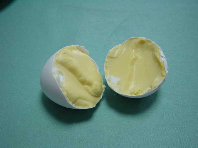 ボイルした攪拌卵の殻を剥いた写真です。
