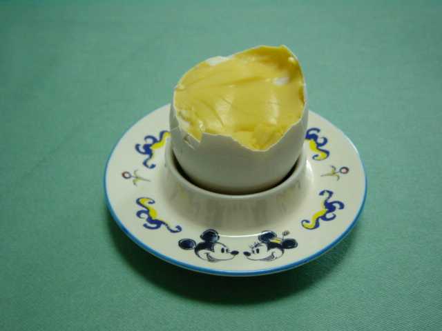 攪拌直後のたまごを割って、中身を取り出した