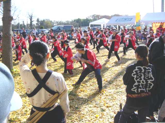 踊り手(赤いはっぴを着た人)の一番手前は、