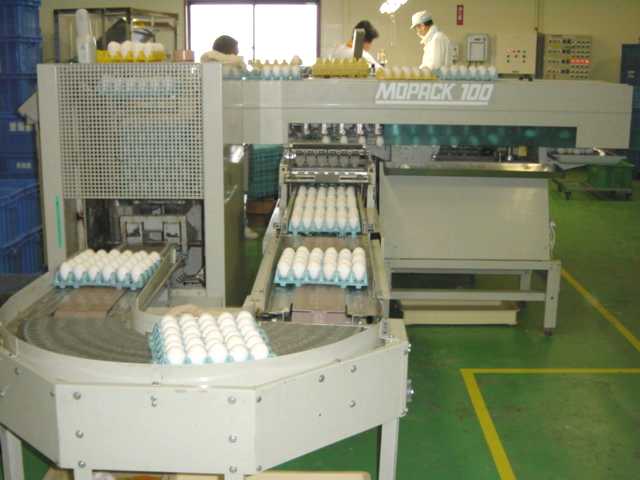 で搬送され、検卵、洗卵、乾燥、パック詰めが行わ