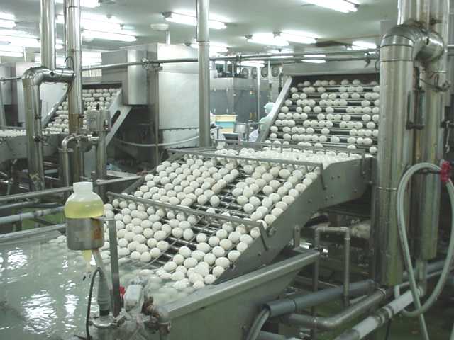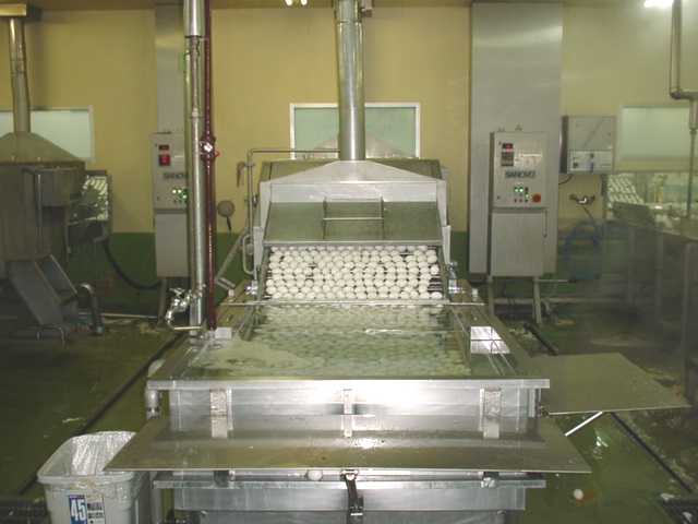 ゆでたまごは、この装置で殺菌されて出てきます。