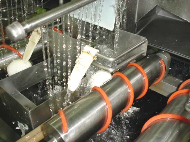 殻剥き機の接近写真です。ちょうど、たまごが運ば