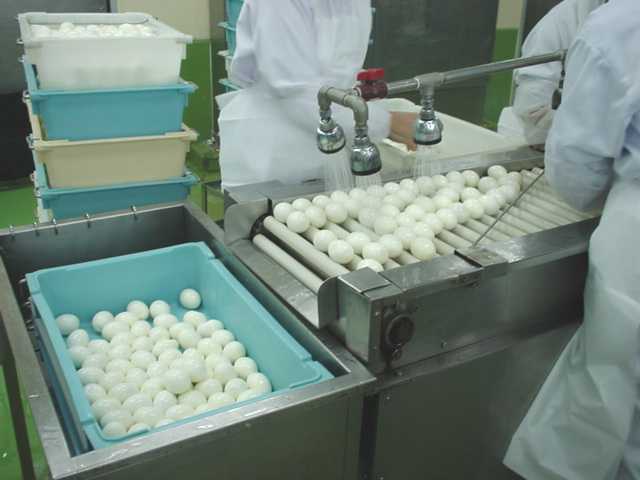 殺菌装置から出てきたゆでたまごは、味を付ける