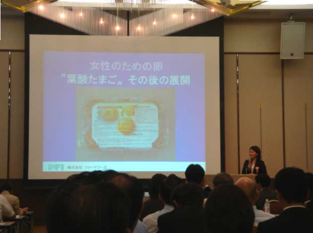 「葉酸たまご」の開発、展開に関する講演の様子