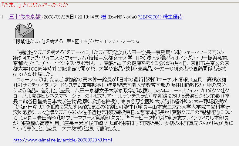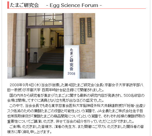・ここでは、「第5回 たまご研究会」に関する報道記事などを掲載しています。(*2008.10.15追加)