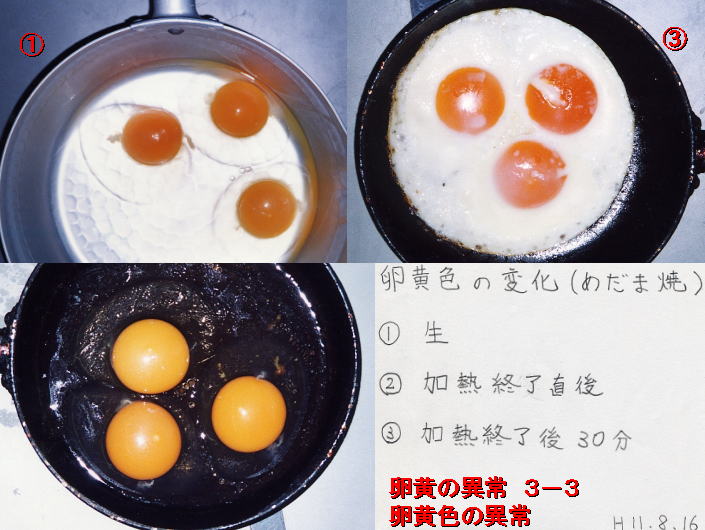 加熱による卵黄色の変化例です。