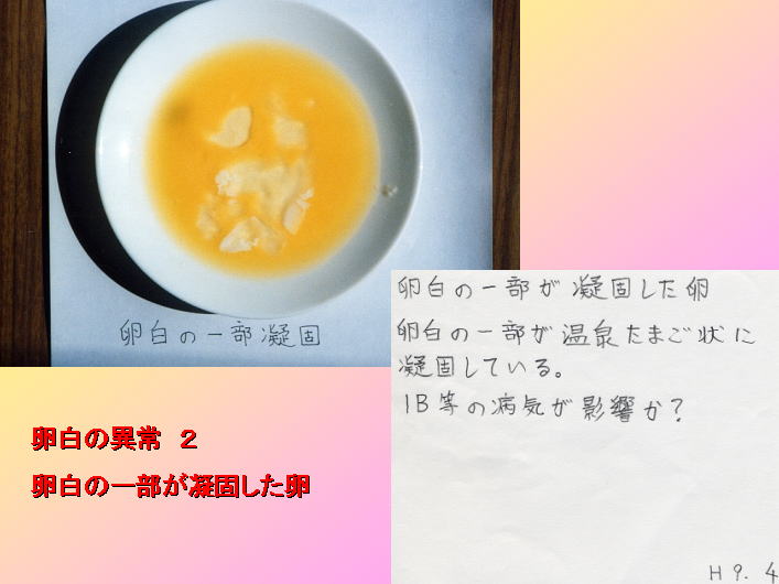 卵白が異常なたまごの例です。