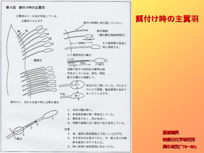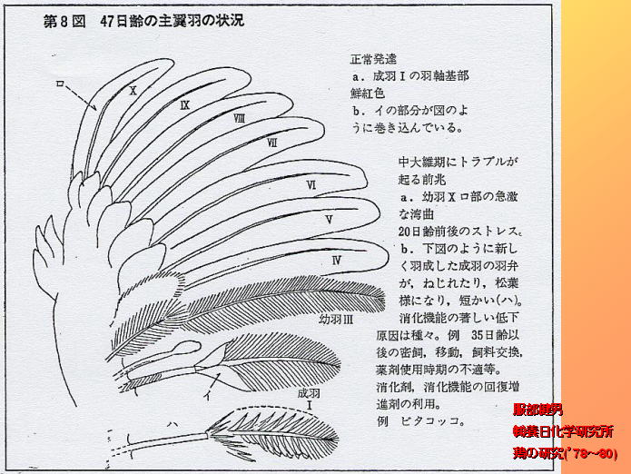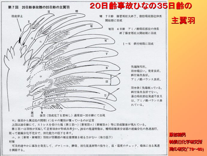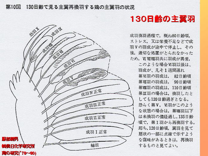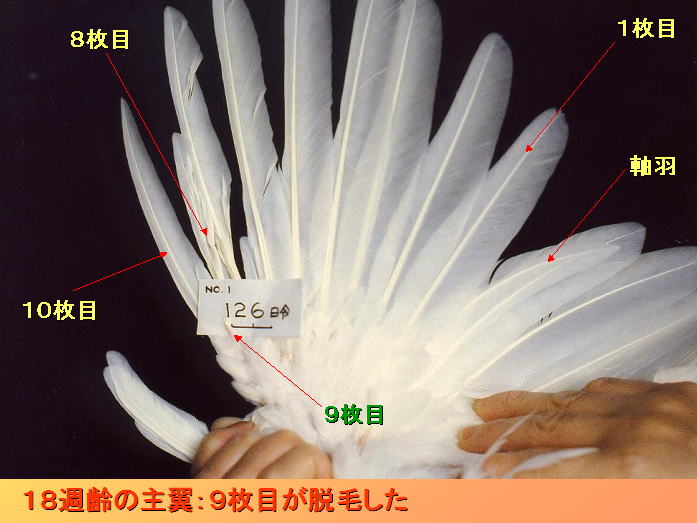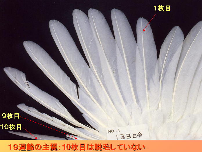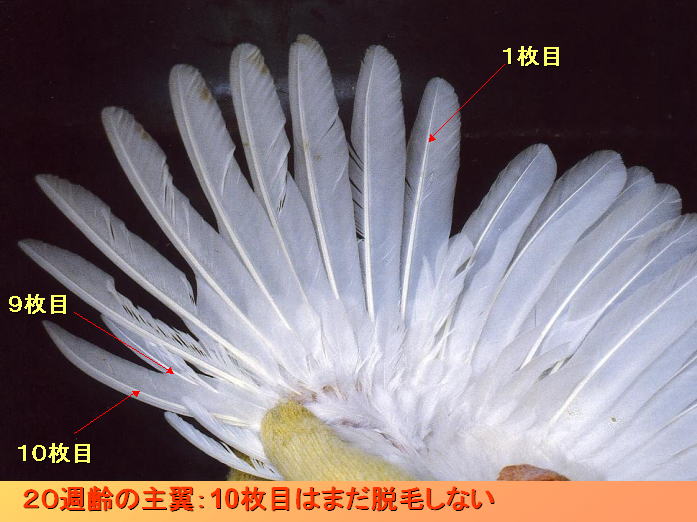 餌付け時(初生ヒナ)の主翼羽の構成図です。