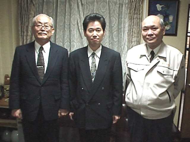 99.11.29に「社団法人 日本卵業協会」会長の清澤 盛雄 氏との対談が実現しました。 清澤会長は、「東洋鶏卵株式会社」の取締役社長をされている方です。写真の左が清澤会長、右が森尾篤 氏(「東洋鶏卵株式会社」の取締役副社長)、中央が私(「たまご博物館」館長)です。