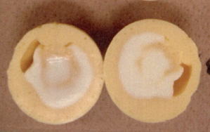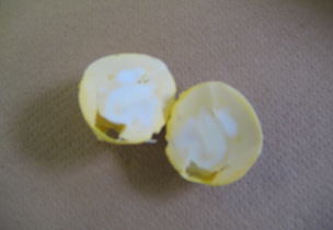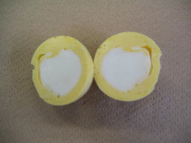 | 内 容 | 「黄身返したまご 〜番外編:白身のもよう比べ〜」 . 講師 八田教授の手で200年ぶりによみがえった、幻の江戸時代の ゆで卵。「黄身返し」は、江戸時代の卵料理本「卵百珍」に掲載され ている、黄身が外側に、白身が内側にひっくり返る不思議なゆで卵で す。 これまでは、「白身がいかに丸く、まん中に」いくかを追求してきました が、「ユニークなもよう」を楽しむ番外篇では、参加者全員で自作の黄 身返したまごを鑑賞します。 |