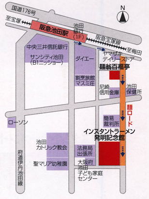 | 場 所 | インスタントラーメン発明記念館 (2階 チキンラーメン手作り体験工房) 大阪府池田市満寿美町8−25 TEL:(072)752-3484 (阪急宝塚線「池田駅」下車 徒歩5分) |
