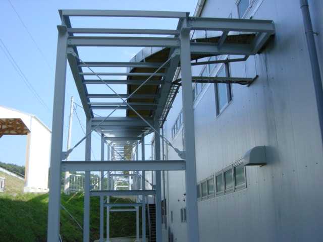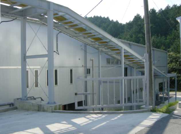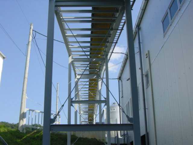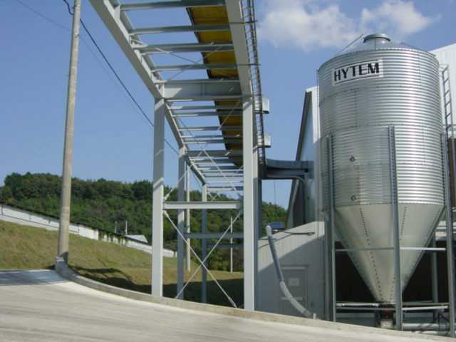 鶏舎側面にあるたまごを運ぶためのローラーコン
