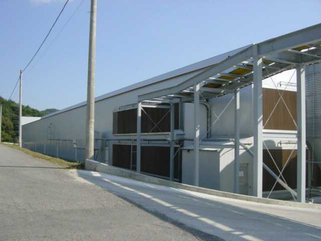 奥行きの全長が100m近くあり、1棟の鶏舎
