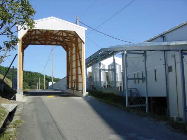 写真奥の一段低い土地にも鶏舎とエサタンクが