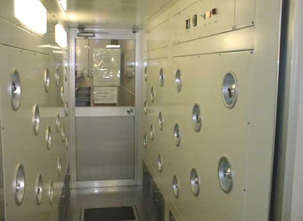 こちら側(洗卵前)を「汚染区域」、向こう側(洗