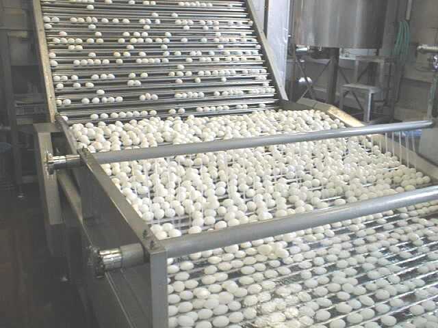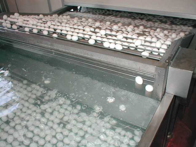 ゆでられたたまごが、「冷却工程」に入る部分の