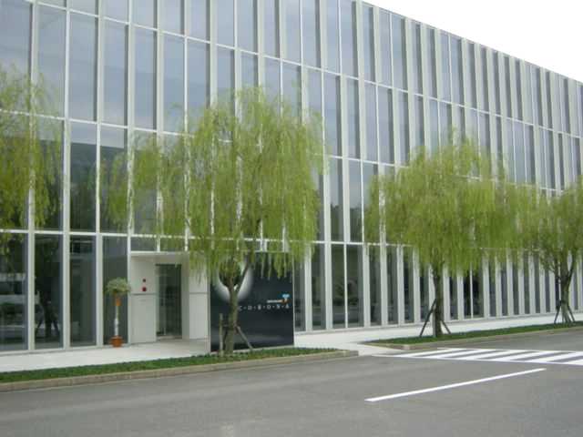 工場前面のガラス壁面です。