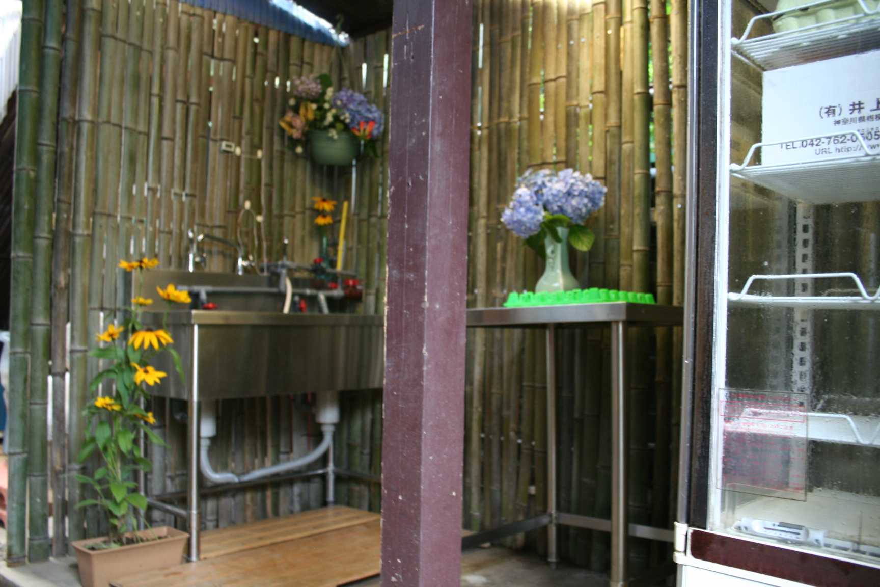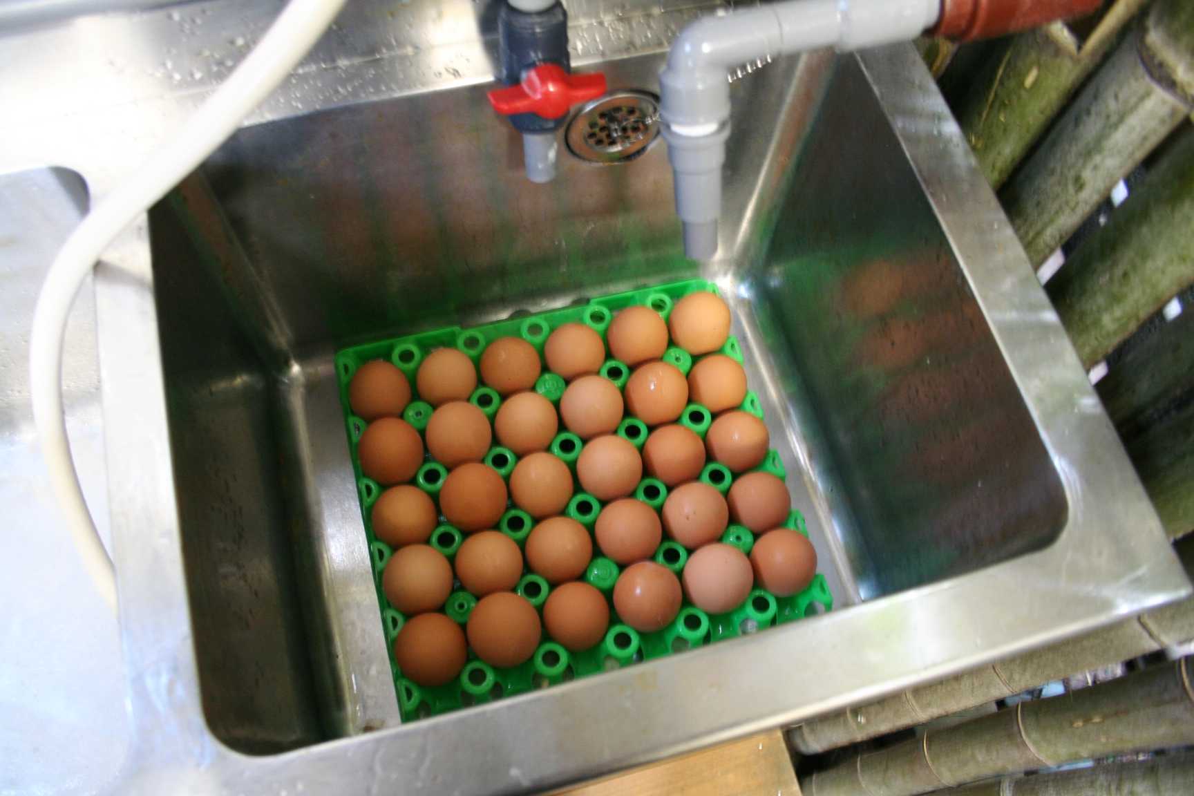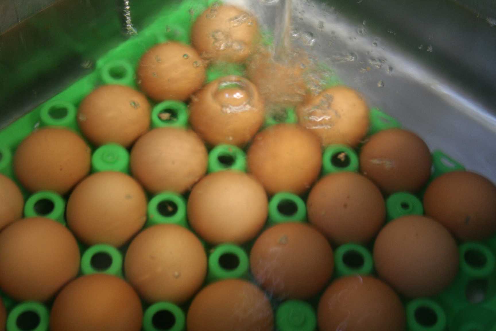 シンクの中に見える緑色のトレイは、たまごを並べるための