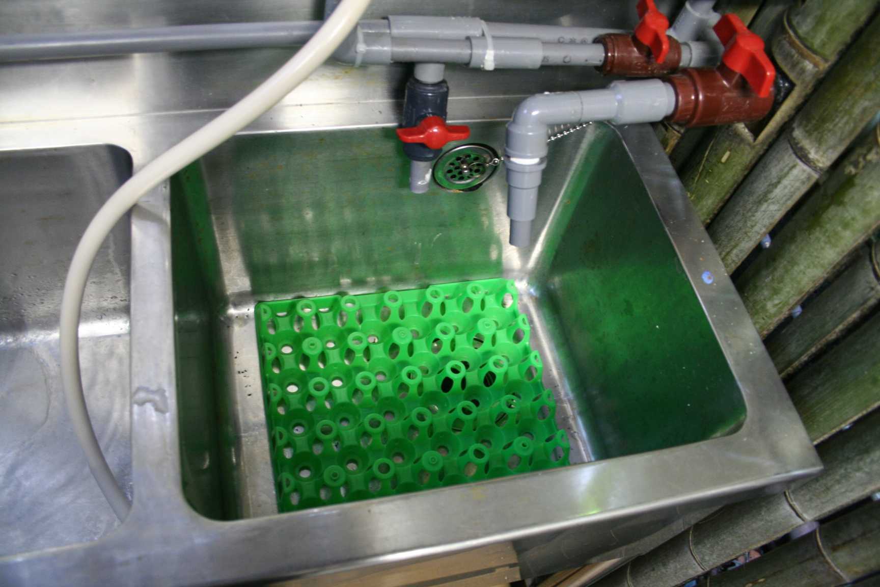 A 温泉たまごを製造するシンク