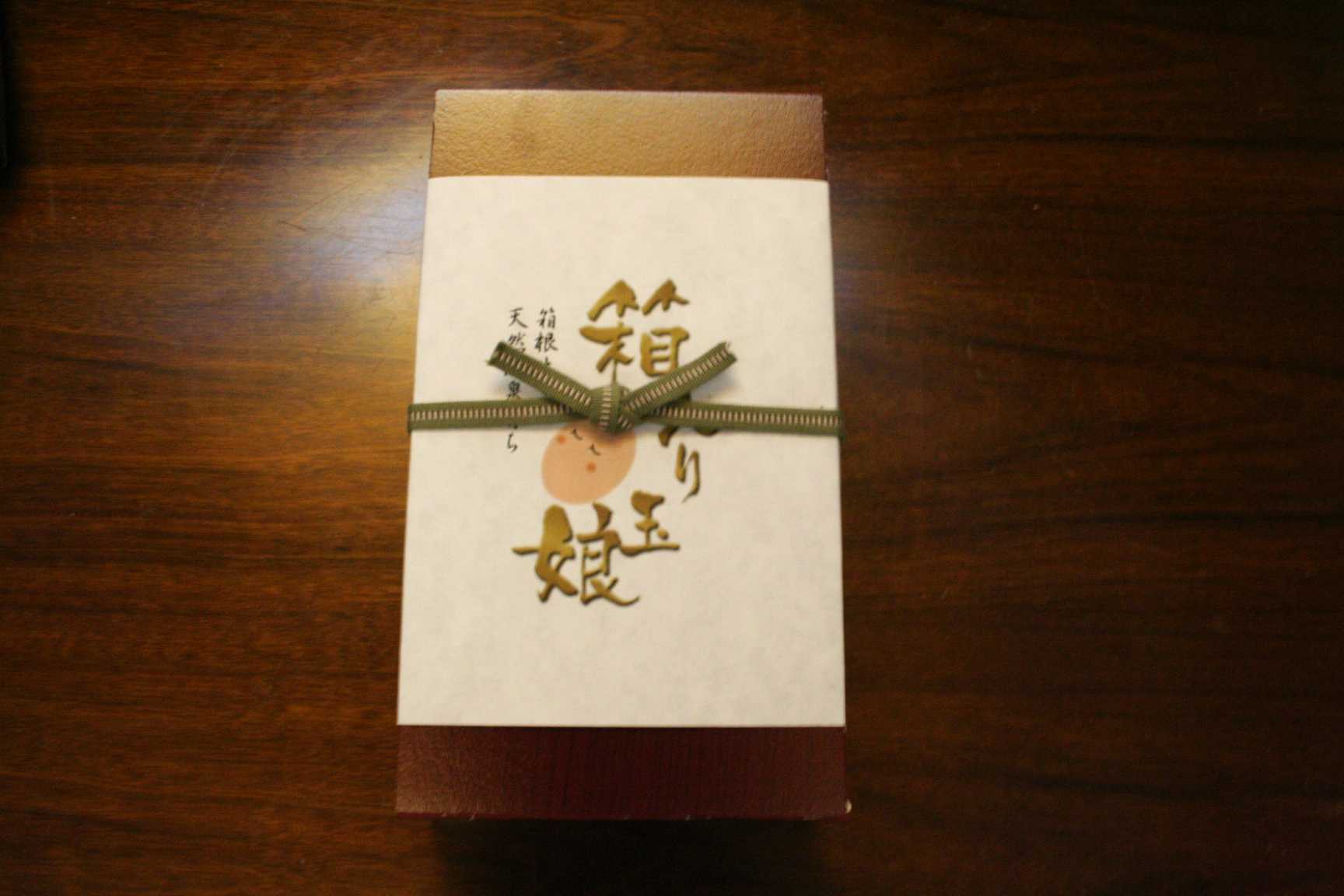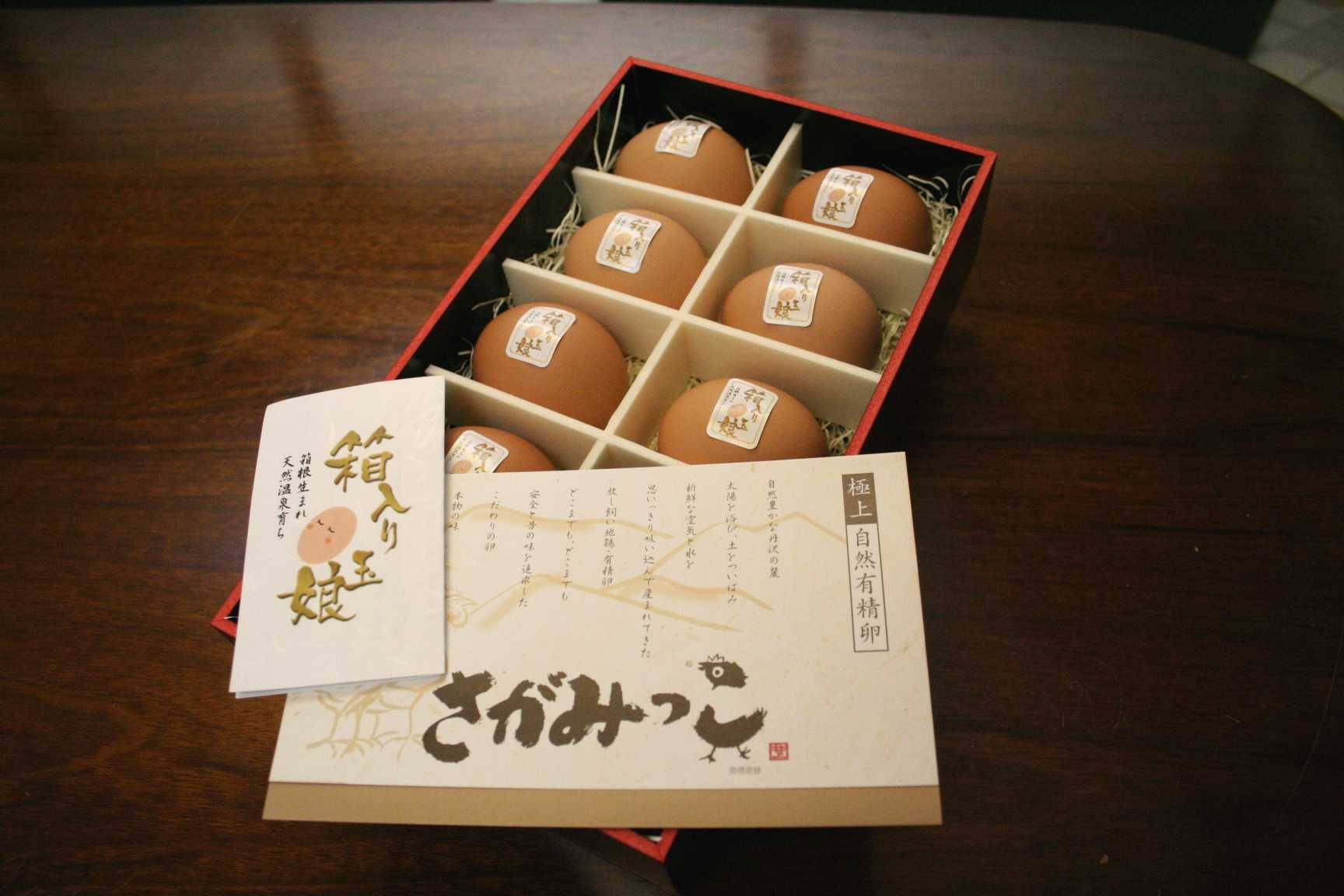 温泉たまご「箱入り玉娘」の高級感あふれる荷姿です。