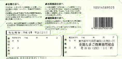 「たまごギフト券」の裏面です。