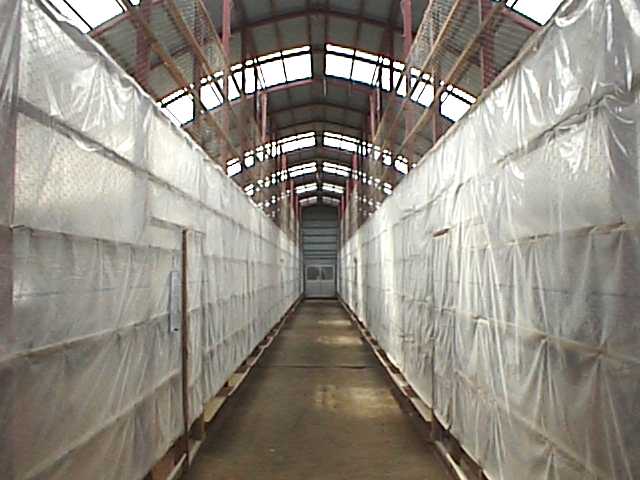 この養鶏場のカマボコ型の「鶏舎」と、鶏の