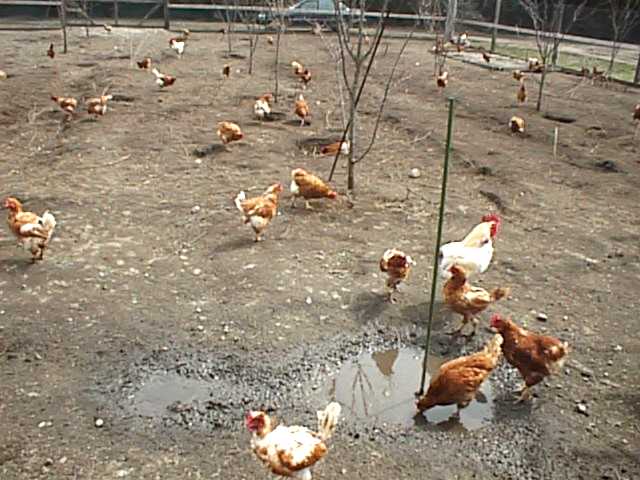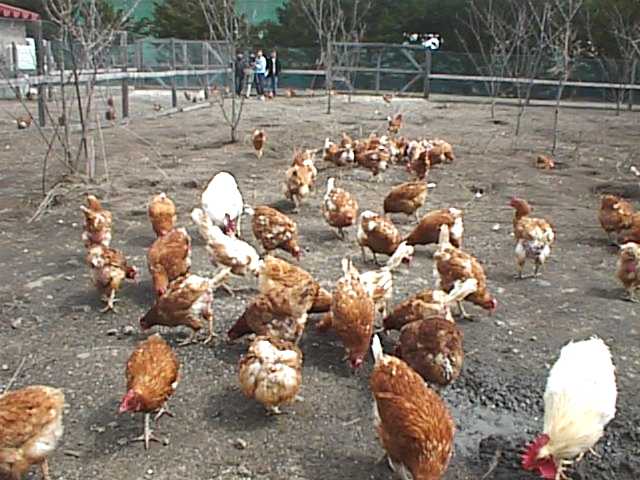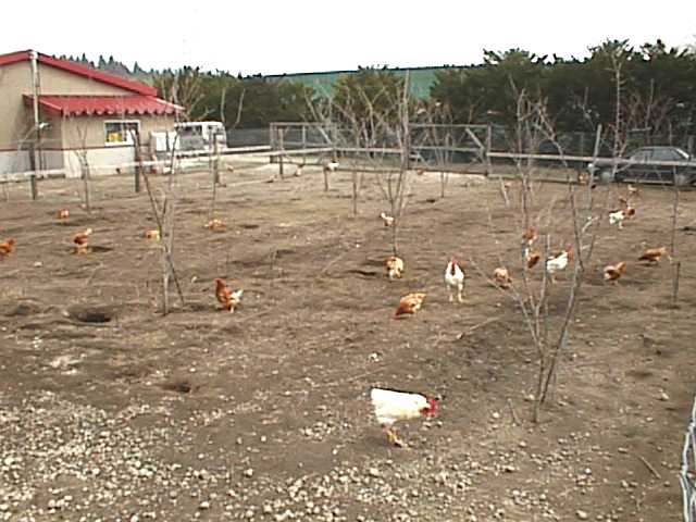 広い敷地の中で、鶏は虫やミミズなどの自然