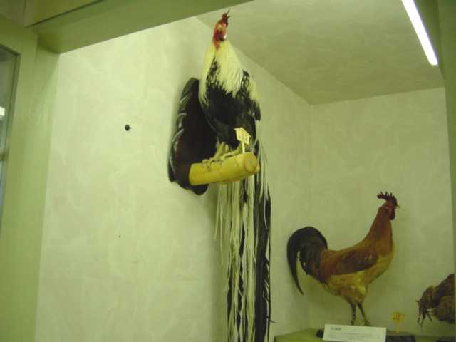写真Oと同じく、特別天然記念物の尾長鶏(おな