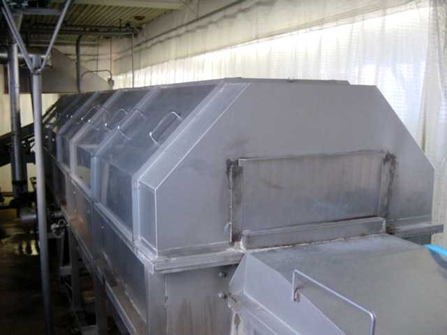 剥かれた殻が装置内からベルトコンベアによって