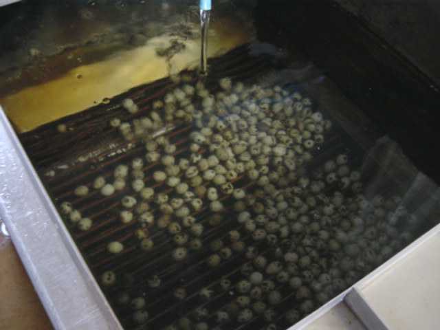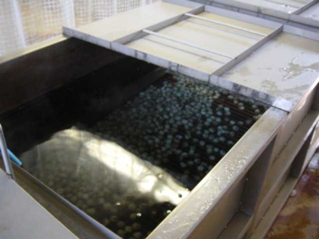 冷却槽内部のウズラ卵の様子です。