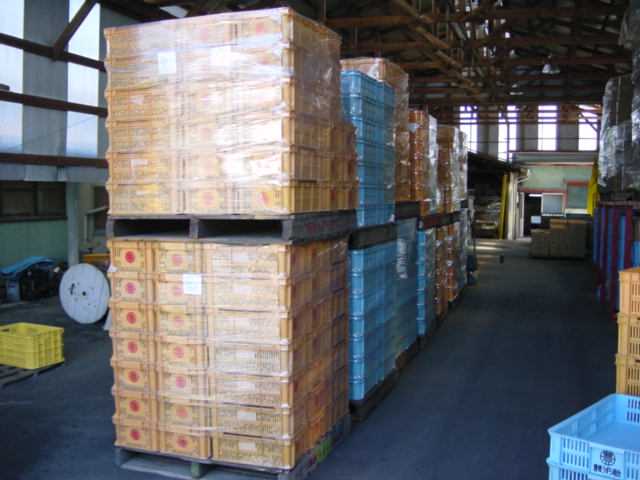 倉庫に運び込まれた原卵の山です。
