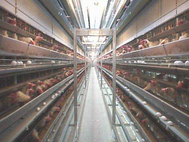 この鶏舎では、ケージ(鶏の入っているカゴ)が7層
