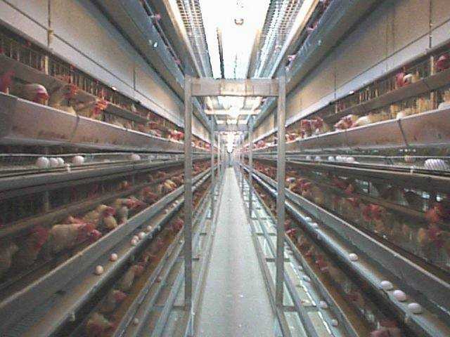 ケージ(鶏)は、この写真では左右に奥に向かって