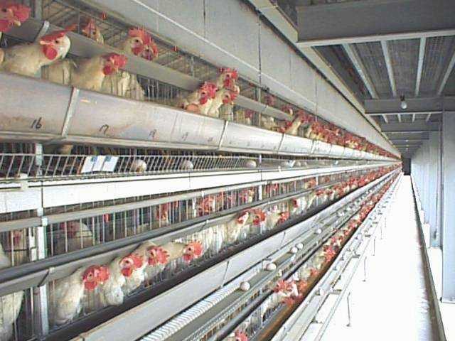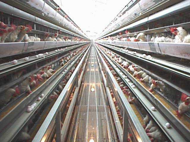 この養鶏場では、1つのケージ(カゴの部屋)の中に
